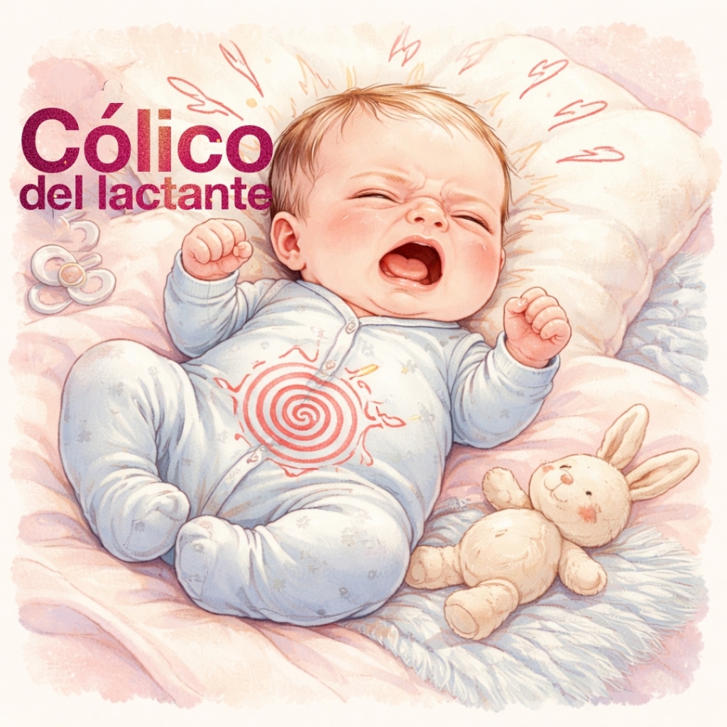 El bebé llora con un llanto desgarrador, parece que tiene hambre pero no se calma con el alimento. Suele acompañarse de enrojecimiento facial, rigidez y flexión de miembros inferiores sobre el abdomen. Es más frecuente a última hora de la tarde. Cuando el episodio termina, el bebe se tranquiliza y vuelve a la normalidad.
